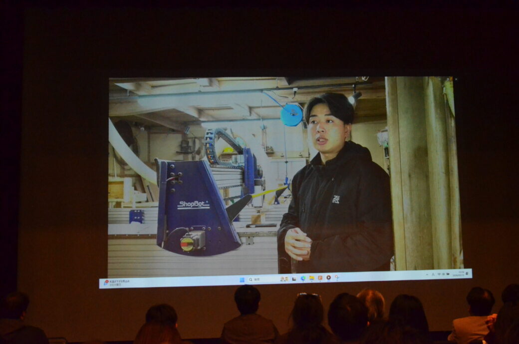 電気工事会社でありながら、ShopBotという高性能な木材加工機を導入し、中山間地域で活動してきました。「山に人が来ないなら、まちに森を持っていく」という発想の転換から、事業リノスク参加者の株式会社成田モータースに依頼して、ShopBotを運べる車を購入し、移動式木工室を制作中です。自身の事業の枠を超えて中山間地域全体の存続を見据え、行政とも連携して「森の未来を守りたい」という思いを語りました。